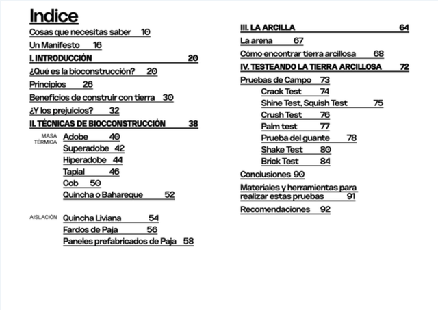 Tal como dice su nombre, es una guía precisa y concisa que no guarda secretos. Más de 7 años de experiencias, pruebas y error, conversaciones, y aventuras reducidas a un libro de bolsillo técnico y didáctico, en donde encontrarás información muy valiosa respecto a la construcción en tierra. Una introducción al mundo de la bioconstruccion, destacando las principales técnicas constructivas, para continuar con detalle sobre la etapa experimental para establecer una mezcla apta para construir.